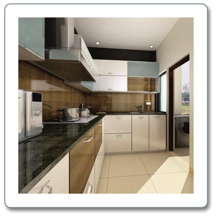 FLOORINGPremium quality granamite tiles flooring in entire flatWallAll internal walls will be finished with birla putty finishAll external wall will be finished with synthetic texture & external paintKitchenGranite finished platform with S.S. Sink, designer glazed tiles dedo up to lintel levelWindowsGood quality anoclizes aluminum section windows with granite sill framing